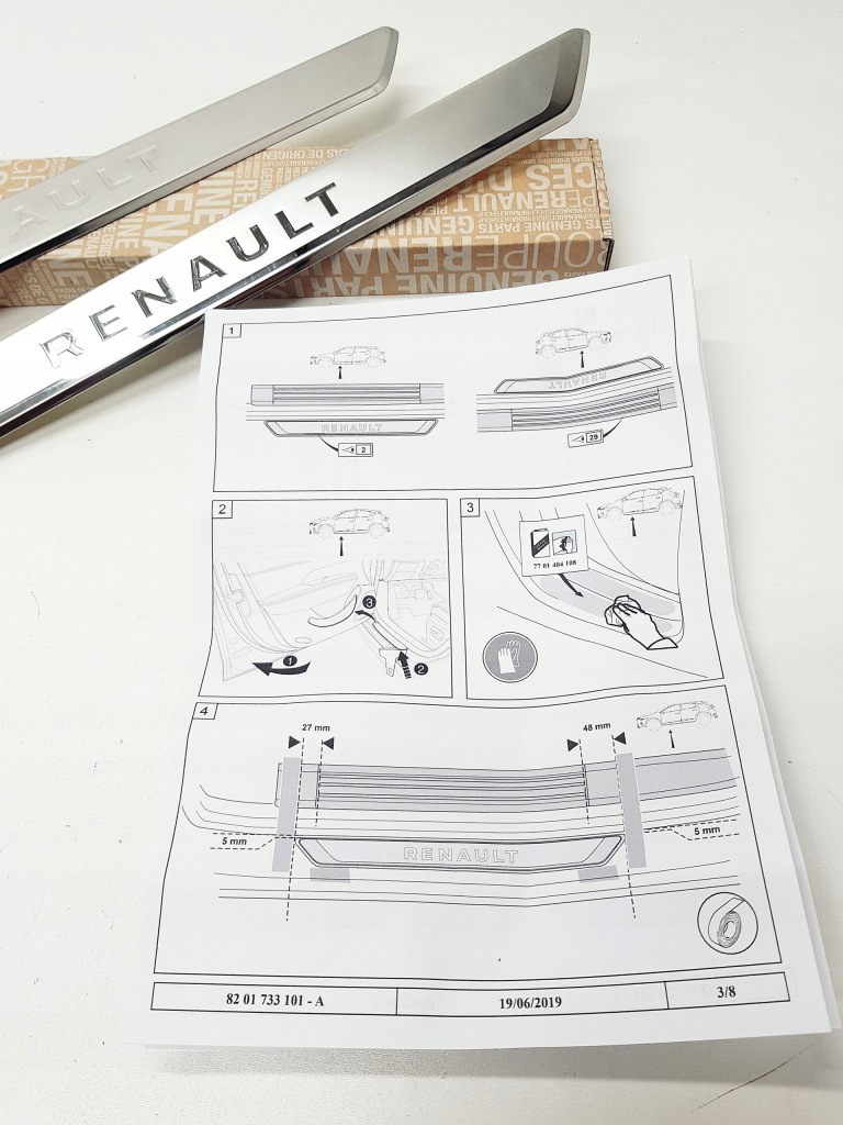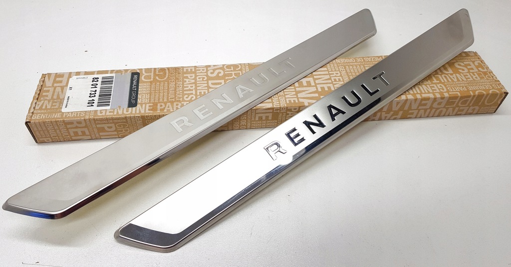 Komplet (2 sztuki) nakładek progowych przednich wykonany ze stali nierdzewnej.
